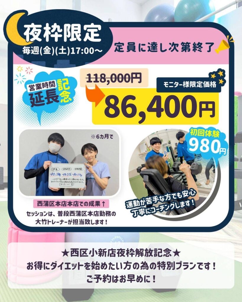 10月キャンペーン[夜枠限定]ダイエットモニターさま(西区小新店)