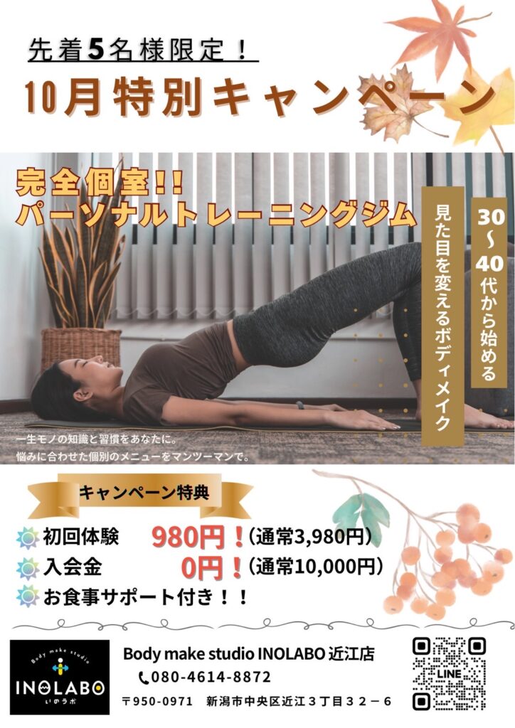 10月キャンペーン[5名限定]30,40代のための本気ボディメイク(中央区近江店)
